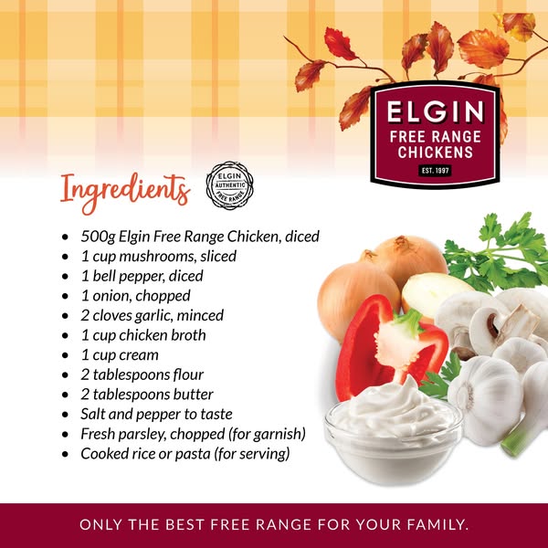 Treat your special someone to a delightful dinner with our creamy and comforting Chicken à la King featuring Elgin Free Range Chicken! This dish is not only easy to prepare but also packed with rich flavours that will impress.