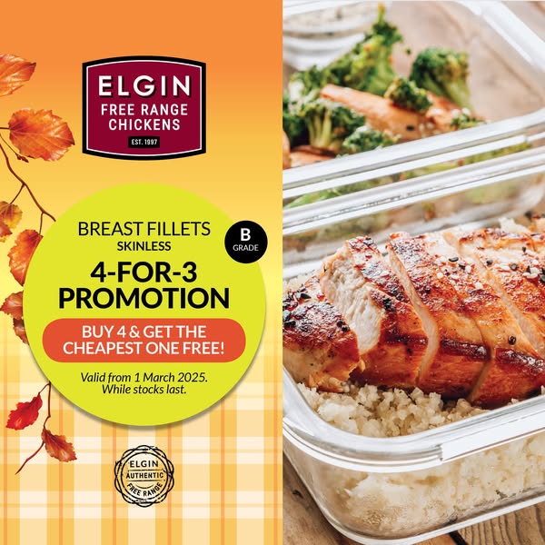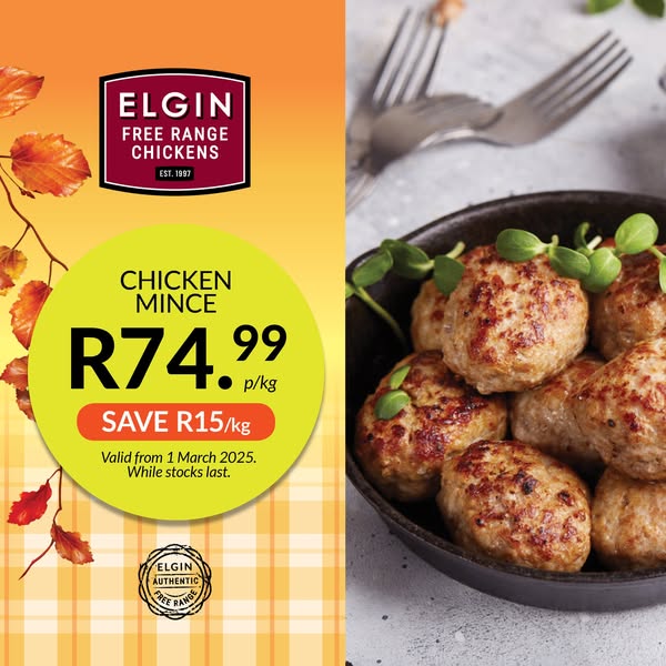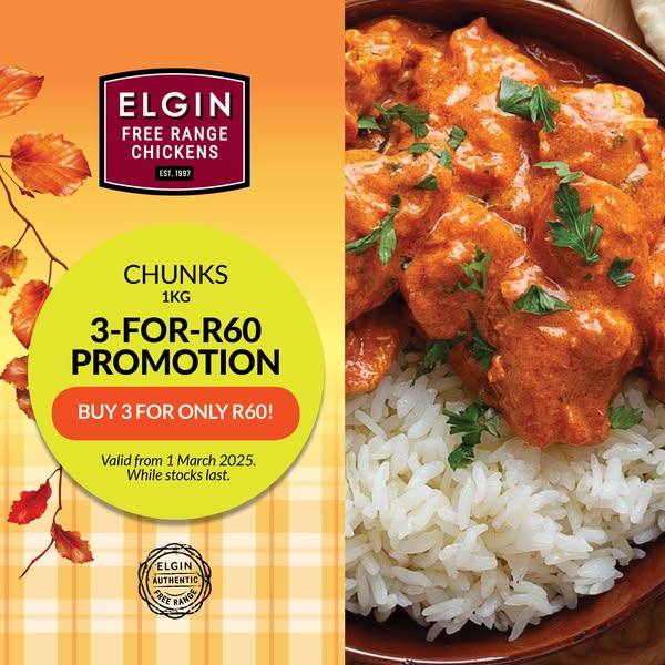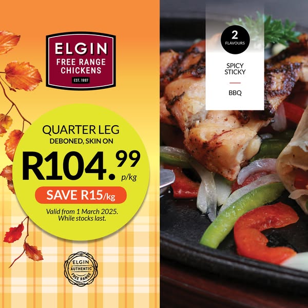 Get ready for an exciting month with Elgin Free Range Chicken! March is all about fresh flavours and delicious meals that bring the family together. Enjoy our special promotions on a variety of chicken products that are perfect for any occasion—whether it’s a weekend braai or a cosy dinner at home.
