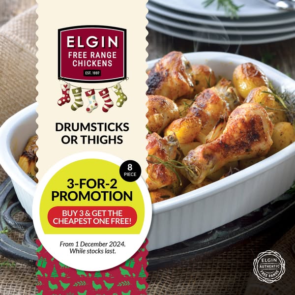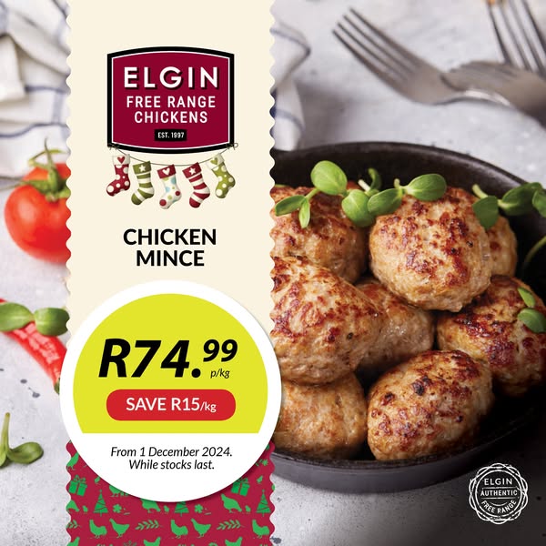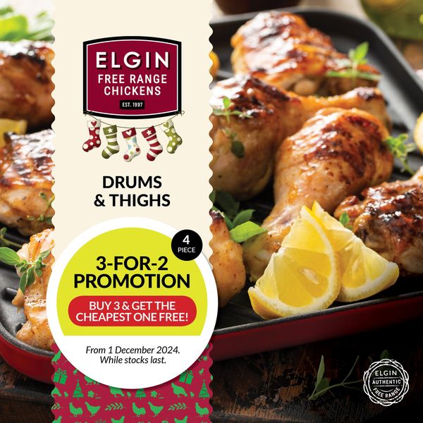 Get ready to stock up on your favourite Elgin Free Range Chicken products this Festive Season! With incredible deals this December, you’ll be sure to find everything you need for those family dinners and weekend braais to celebrate the Holidays ahead.