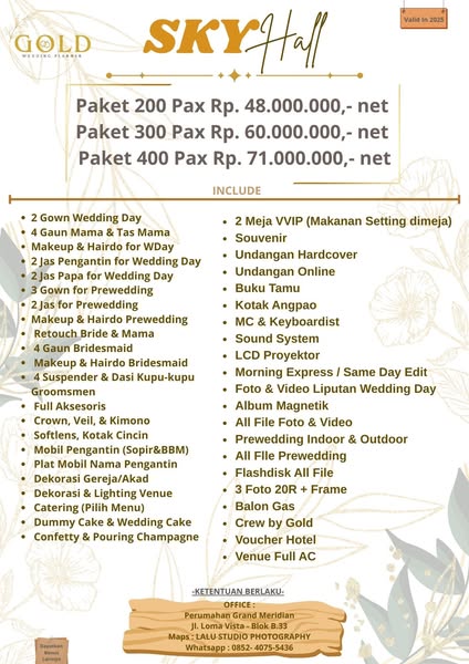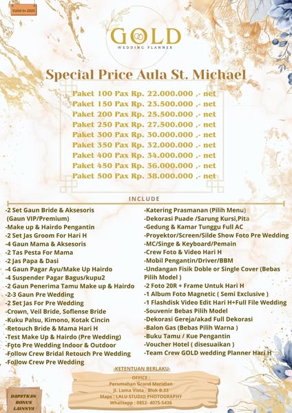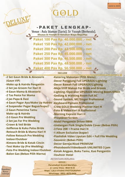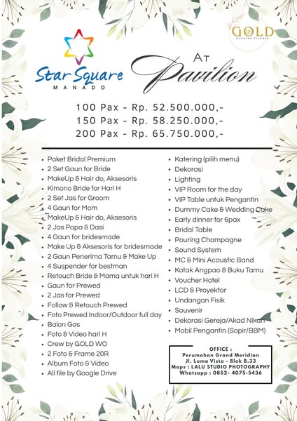 搜索关键词 wedding planner Manado, affordable wedding package, wedding venue options, pre-wedding video bonus, online invitation bonus, professional wedding vendors, budget wedding Manado, wedding services, Manado wedding, wedding packages优势 Affordable packages,Multiple venue options,Professional vendors,Customizable to budget,Bonus pre-wedding video and online invitation