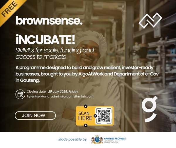 #BrownSense with Algoatwork Robotics Academy in partnership with the Gauteng Department of e-Government, invites early-stage entrepreneurs to apply for these fully funded initiatives to formalise, scale, and grow your business!