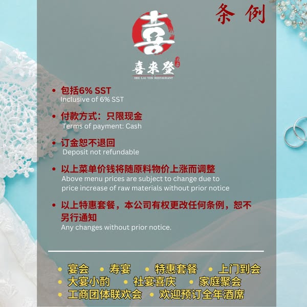 🎉💍 Celebrate your special day with a luxurious wedding banquet at HEE LAI TON RESTAURANT (PJ-SS13) ! 🎉💍