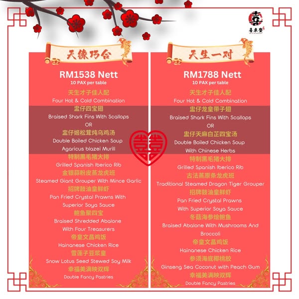 2️⃣ Heavenly Match - RM 1388 per table (10 pax)