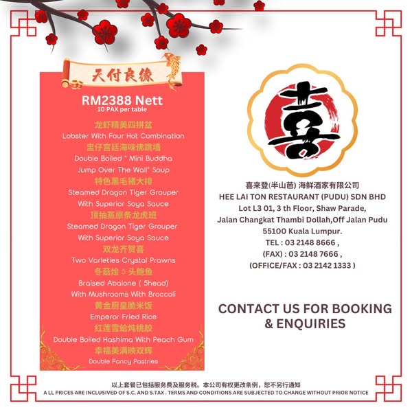 At Hee Lai Ton Restaurant (PUDU), we proudly present a range of meticulously crafted wedding banquet packages to help you and your loved one celebrate a lifetime of love. Whether you prefer a simple and elegant affair or a lavish feast, we have the perfect option for you.