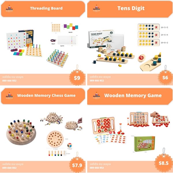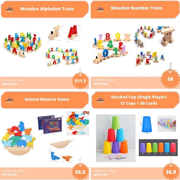 🙏សួស្តីបា៉មា៉ក់ និងបងប្អូនទាំងអស់គ្នា ហាងយើងខ្ញុំ មានសម្ភារះកុមារលេងបែបសិក្សា ដើម្បីបង្កើនភាពឆ្លាតវៃរបស់កុមារ ទើបនឹងចូលថ្មីជាច្រើនប្រភេទសំរាប់បា៉មា៉ក់ជ្រើសរើសជាកាដូរសំរាប់កូនជាទីស្រលាញ់របស់ប៉ាម៉ាក់