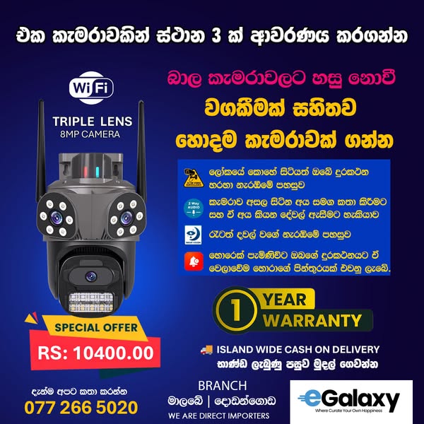 搜索关键词 CCTV camera, home security, security system, night vision camera, smartphone camera, live view camera, cloud storage camera, two way audio, Sri Lanka security, island wide delivery优势 Live View via Smartphone,Playback Option,Cloud + MicroSD Support,Full Color Night Vision,Two Way Audio,Smart Auto Connect,One Year Warranty,Island Wide Cash on Delivery