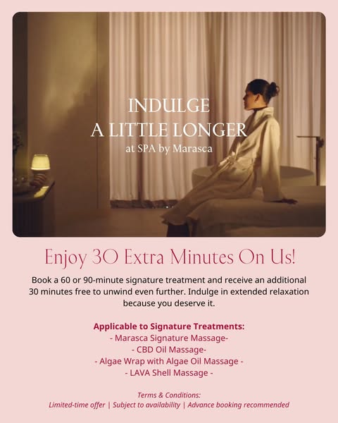🪷 Indulge a Little Longer at SPA by Marasca. Enjoy 30 Extra Minutes On Us!