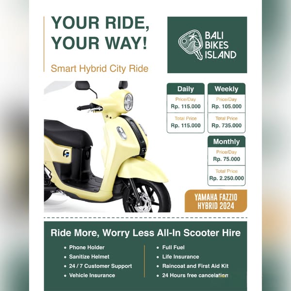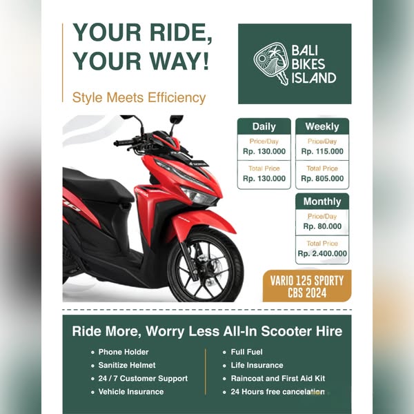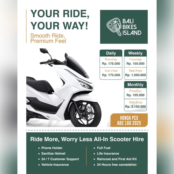 搜索关键词 scooter rental bali, bali scooter hire, premium scooter, bali transportation, motorcycle rental, explore bali, bali travel, scooter adventures, rent a scooter, bali roads优势 Premium Feel,Suitable for Bali Roads,Clean Helmet Provided,Full Tank of Gas,Ready to Ride