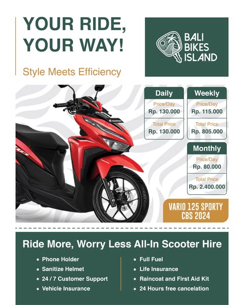 搜索关键词 Bali scooter rental, scooter rental bali, bali transportation, lightweight scooter, insured scooter, efficient scooter, popular scooter bali, bali scooter hire, rent scooter, Bali travel优势 Lightweight,Efficient,Fully Insured,Most Popular