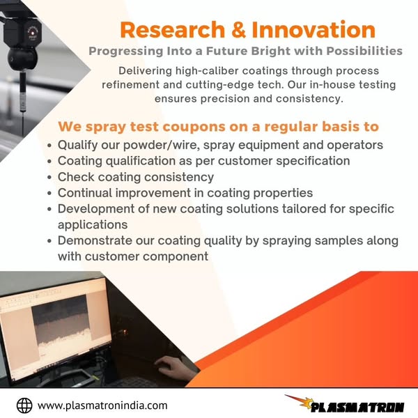 Your Reliable Surface Engineering Experts, Specializing in Thermal spray Coating and Weld overlay services. We offer advanced technologies like Ultra Pulse, HP-HVOF, Plasma, Wire Arc, Spray & Fuse, Semi-Auto PTAW, and Semi-Auto GTAW. Our comprehensive manufacturing capabilities include Conventional and CNC turning and grinding, as well as HMC/VMC machining. Empowering industries with wear, corrosion and abrasion resistant coatings for Valves, Hydraulics, Compressors, Pumps, Oil & Gas, and Steel. Delivering precision and consistency through in-house testing and continual innovation tailored to specific applications. 🛠️🔧 For Enquiries Mail us or Contact Us for More Information: 🌐