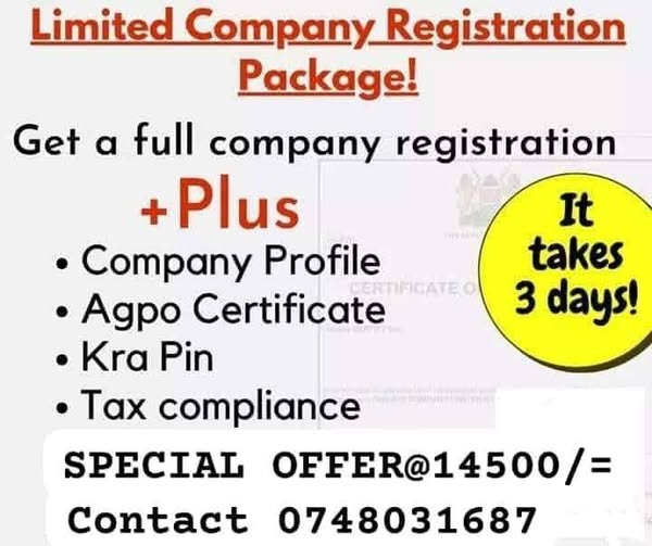 搜索关键词 company registration Kenya, passport processing services, business registration services, NTSA services Kenya, CRB clearance certificate, NGO registration Kenya, company seal and stamps, IFMIS registration assistance, limited company registration, urgent document processing优势 Same day delivery,Discounted rates in 2025,Countrywide branches,Realtime responses
