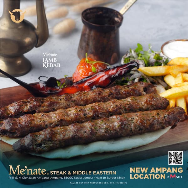 搜索关键词 Me'nate Steak Hub, Steak Ampang, Middle Eastern food Kuala Lumpur, wagyu steak, Angus beef, best steak, Kuala Lumpur delivery, FoodPanda Menate, GrabFood Menate, ShopeeFood Menate优势 Wide Variety of Premium Meats,Middle Eastern Menu at Ampang Outlet,Multiple Delivery Options
