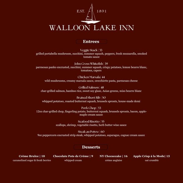 A new menu has arrived at Walloon Lake Inn!