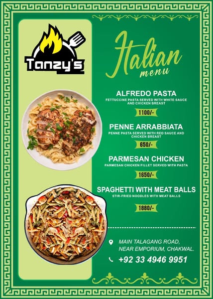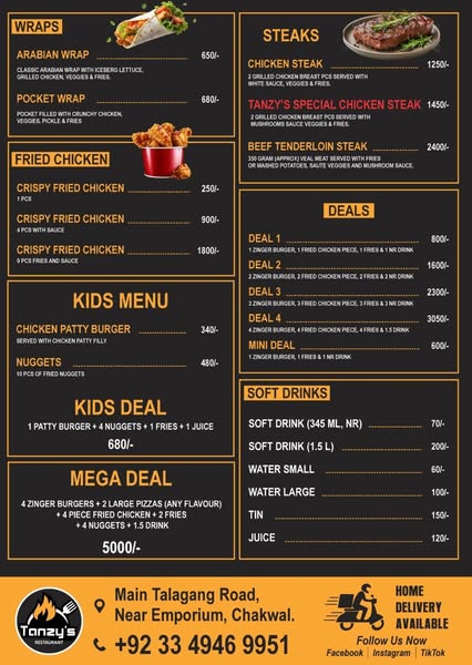 Enjoy the new deals at your own Tanzy's Restaurant Chakwal.🤤 For home delivery, order at 03349469951.