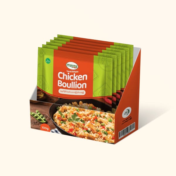 Mayra Bouillon Powder သည် တူရကီနိုင်ငံမှ ထောက်ခံချက်ပေါင်းများစွာဖြင့် ထုတ်လုပ်ထားသော လူမျိုးဘာသာမရွေးစားသုံးနိုင်သည့် ဟာလာဟင်းခတ်မှုန့်ဖြစ်သည်။ Walking Brands မှ Mayra ဟင်းခတ်မှုန့်တစ်မျိုးစီအတွက် Packaging Design နှစ်မျိုးကိုဖန်တီးပေးခဲ့ပြီး၊ Mayra ကြက်သားမှုန့်အတွက် အဖြူရောင် Packaging နှင့် Mayra ဟင်းသီးဟင်းရွက် ဟင်းခတ်မှုန့်အတွက် အစိမ်းရောင် Packaging ကို ရေးဆွဲဖန်တီးခဲ့ပါသည်။