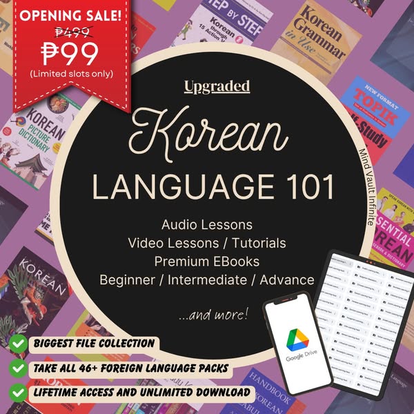 Whether you're just getting started or leveling up your fluency, this digital mega-pack with over *200GB worth of files* that includes ebooks, audio lessons, practice PDFs, and more to help you learn on your own terms, anytime and anywhere! 🌎