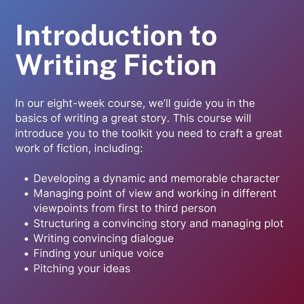 Whether your passion lies in fiction, writing from life, or writing for stage and screen, there’s a course for all interests.