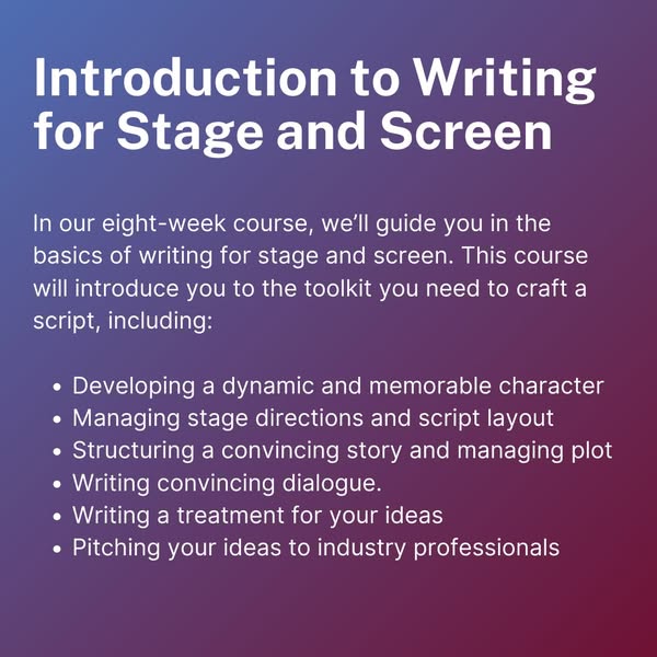搜索关键词 creative writing courses, writing short courses, Birkbeck writing, writing for screen, fiction writing courses, writing career investment, evening writing courses, storytelling courses, writing courses London, UK writing courses优势 Variety of course options,Investment in writing career,Convenient evening schedule