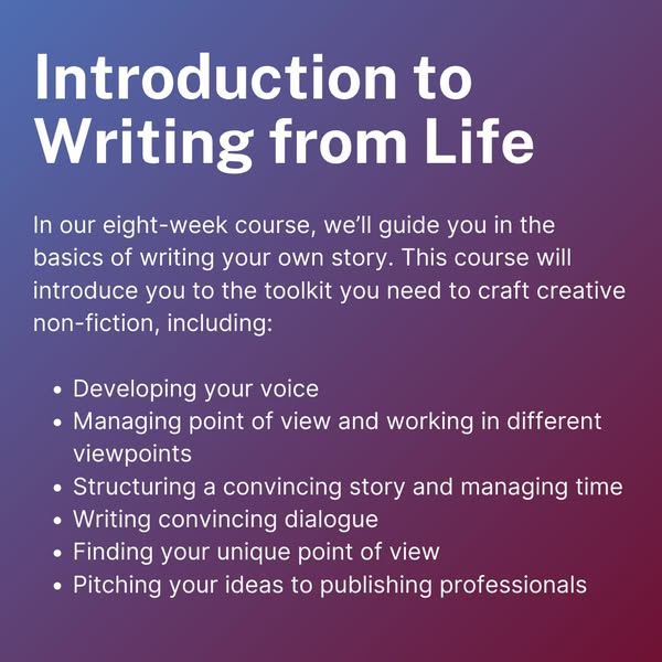 Whether your passion lies in fiction, writing from life, or writing for stage and screen, there’s a course for all interests.