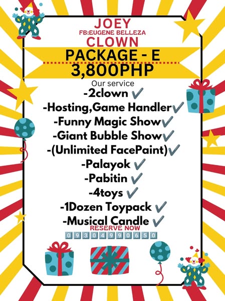 For Bookings and more inquiries you may Call or text us ☎️☎️0930-499-0650 and visit our page Joey Clown for more photos and videos.