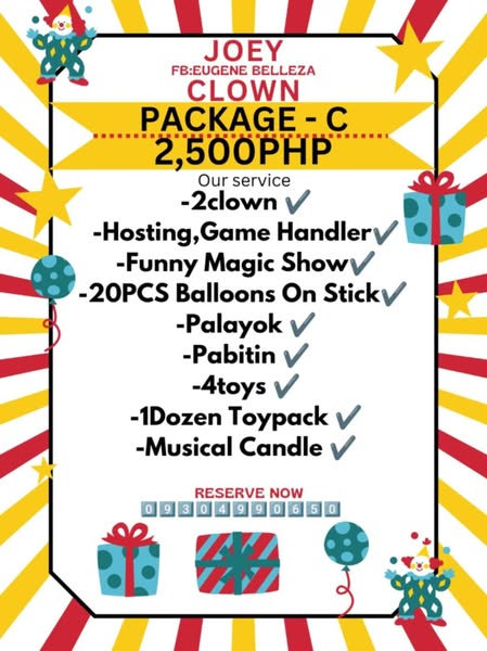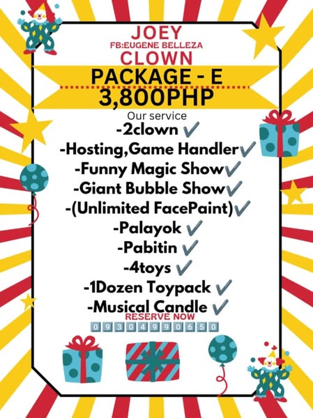 For Bookings and more inquiries you may Call or text us ☎️☎️0938-484-6627 and visit our page Joey Clown for more photos and videos.