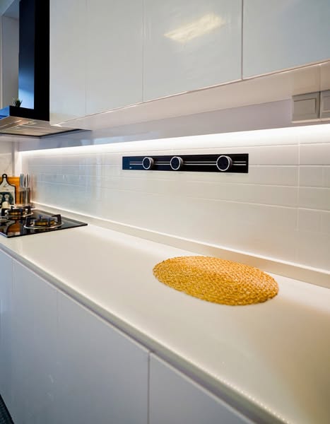 搜索关键词 Kitchen renovation, White kitchen design, Singapore kitchen, Home improvement, Modern kitchen, Jurong west renovation, Home design, Custom kitchen, kitchen remodeling, power track kitchen优势 Modern Design,Power Track Functionality,Seamless Installation,Stylish and Efficient