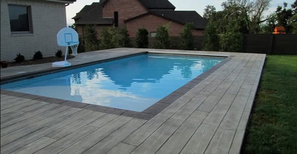 And that may be the most surprising style of stamped concrete. It can be stamped and dyed to look like real wood, right down to the grain. It’ll definitely raise eyebrows while protecting your toes from irritating and painful slivers!