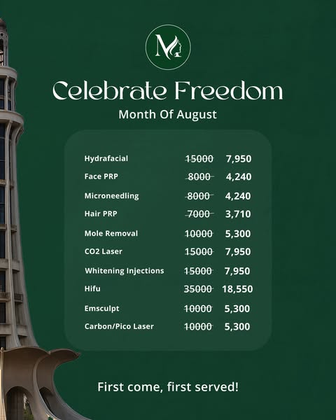 #MedicureAesthetics #AestheticServices #DrSamirTarar #AzadiSale #PakistanZindabad #47PercentOff #IndependenceMonth #AzadiDeals #AugustSale #FreedomToSave #PakistaniBrands #JashnEAzadi #GreenAndWhite #Flat47Off #AzadiShopping #CelebratePakistan