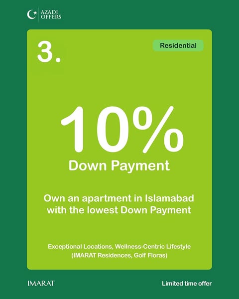 搜索关键词 own property, zero down payment, rent to buy, real estate investment, affordable housing, property ownership, imarat graana, azadi offer, investment opportunities, pakistan real estate优势 0% Down Payment Option,1% Monthly Rent-to-Buy Option,10% Down Payment Option,Removes traditional barriers to ownership