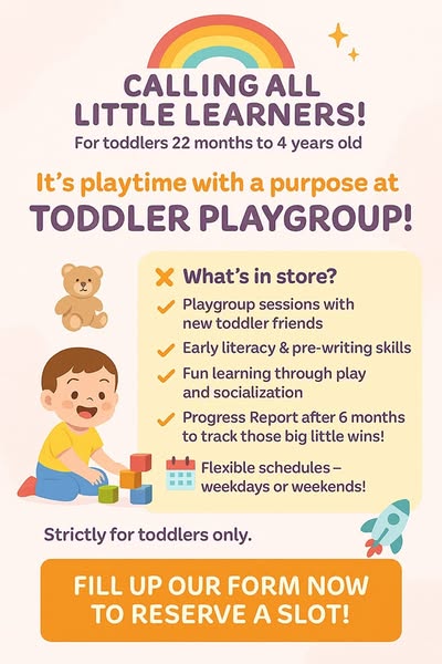 ✅ Toddler Playgroup (22 months – 4 y/o)
