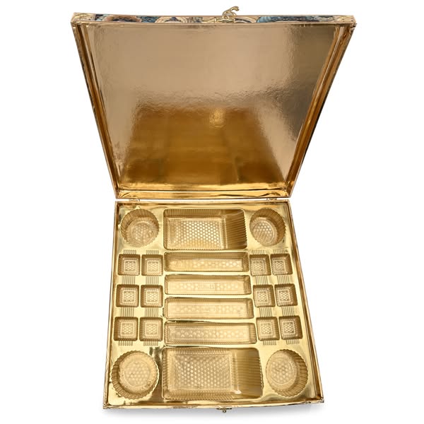 Beautifully crafted for elegance and practicality, the Bhaji Box is your go-to solution for premium sweet packaging. Perfect for festivals or special occasions.
