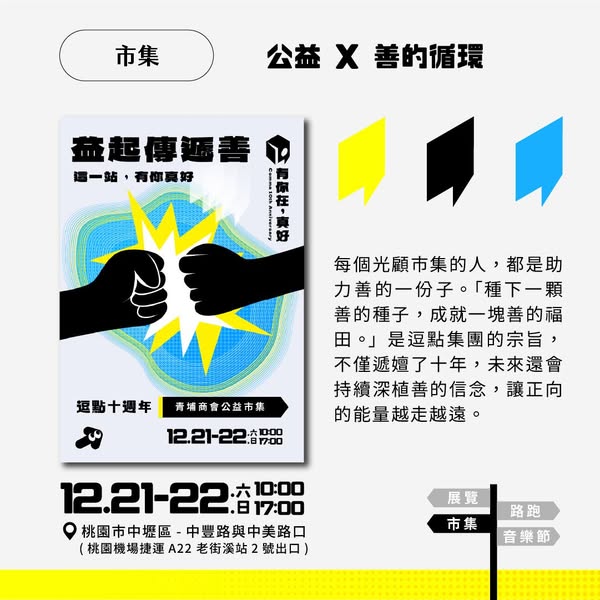 每個光顧市集的人,都是助力善的一份子。「種下一顆善的種子,成就一塊善的福田。」是逗點集團的宗旨,不僅遞嬗了十年,未來還會持續深植善的信念,讓正向的能量越走越遠。