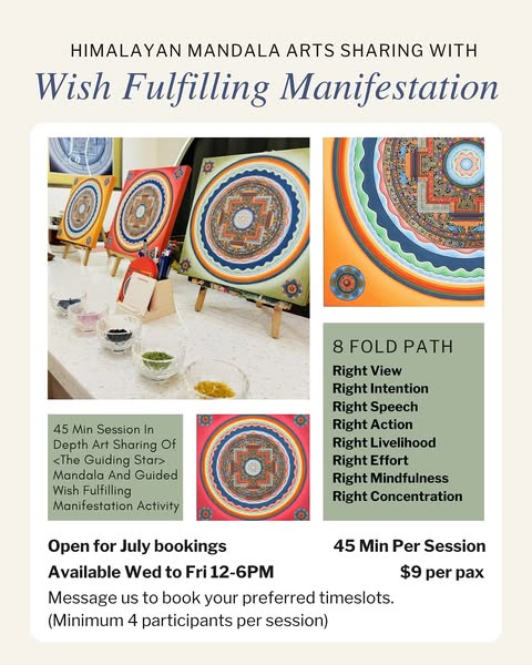Relax and unwind, enjoy a quick retreat with art appreciation and sound healing to soothe your senses. Learn about the deep wisdom behind Himalayan mandala and let the healing vibrations of the crystal sound bath encourage you to turn inwards and hold space for yourself to heal ✨