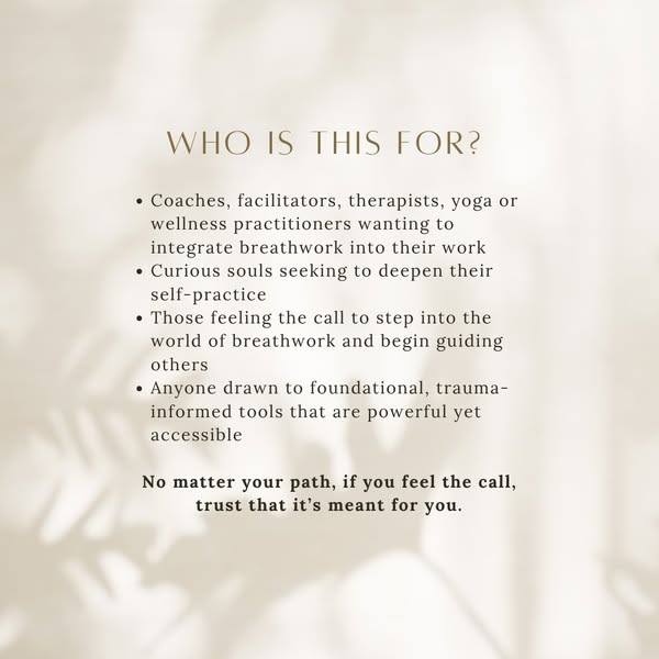 搜索关键词 breathwork training, yoga alliance, continuing education, personal development, embodied experience, lumina breathwork, online course, holistic wellness, mindfulness practice, breathwork certification优势 Practical skills and embodied experience,Yoga Alliance Continuing Education (YACEP) accredited,Offers 35 CE hours,Personal growth and professional development