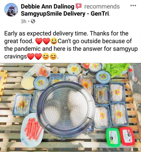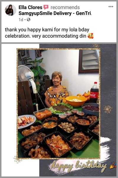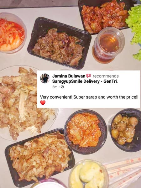 搜索关键词 Samgyupsal delivery, Korean BBQ, Gentri delivery, affordable samgyup, free griller, GrabFood, Foodpanda, same day delivery, open 7 days, customer recommendations优势 Free use of portable griller,Affordable packages,Open 7 days a week,Same-day orders accepted,Available on GrabFood and Foodpanda