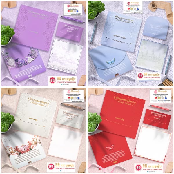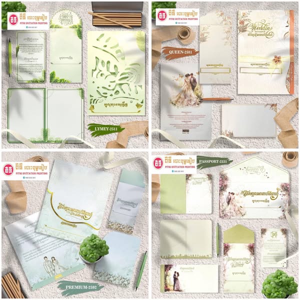 搜索关键词 wedding invitations Cambodia, custom invitation printing, affordable wedding invites, unique wedding designs, invitation card design, invitation card printing service, wedding invitation services, wedding planning Cambodia, event invitation card, birthday invitation card优势 Unique and elegant designs,Wide variety of styles,Reasonable prices,Custom design options,Free promotional items,Delivery to 25 provinces/cities