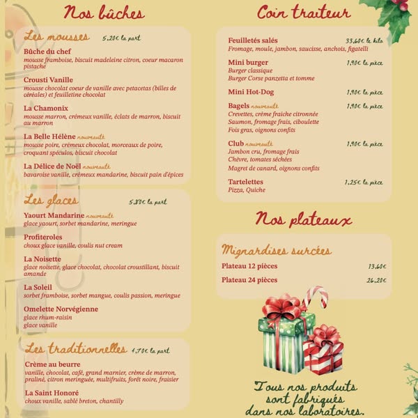 Plateaux salés, mignardises sucrées, coin traiteur, bûches, pains croustillants et chocolats maison... Nous avons tout prévu pour régaler vos convives ☺️