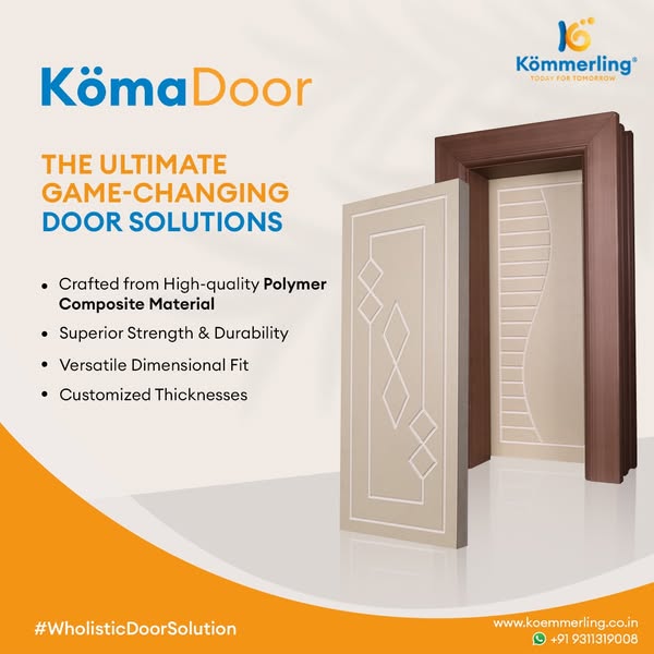 Crafted with German precision and engineered specifically for the Indian market, 𝗞𝗼𝗺𝗮𝗗𝗼𝗼𝗿 𝗿𝗲𝗱𝗲𝗳𝗶𝗻𝗲𝘀 𝘄𝗵𝗮𝘁 𝗮 𝗱𝗼𝗼𝗿 𝘀𝗵𝗼𝘂𝗹𝗱 𝗯𝗲 — 𝘀𝘁𝗿𝗼𝗻𝗴, 𝗱𝘂𝗿𝗮𝗯𝗹𝗲, 𝘀𝘁𝘆𝗹𝗶𝘀𝗵, 𝗮𝗻𝗱 𝘀𝘂𝘀𝘁𝗮𝗶𝗻𝗮𝗯𝗹𝗲. Unlike traditional doors that warp, crack, or attract termites over time, KömaDoor stands resilient against moisture, heat, pests, and everyday wear. Whether it’s a main entrance, interior room, or commercial space, KömaDoor delivers long-lasting performance with unmatched structural strength and design flexibility. 𝗙𝗿𝗼𝗺 𝘀𝗼𝗹𝗶𝗱 𝗱𝗼𝗼𝗿 𝗳𝗿𝗮𝗺𝗲𝘀 𝗮𝗻𝗱 𝗽𝗮𝗻𝗲𝗹𝘀 𝘁𝗼 𝘀𝗹𝗲𝗲𝗸 𝘂𝗣𝗩𝗖 𝗳𝗿𝗮𝗺𝗲𝘀 𝗮𝗻𝗱 𝗲𝗹𝗲𝗴𝗮𝗻𝘁 𝗮𝗿𝗰𝗵𝗶𝘁𝗿𝗮𝘃𝗲𝘀, 𝗲𝘃𝗲𝗿𝘆 𝗲𝗹𝗲𝗺𝗲𝗻𝘁 𝗼𝗳 𝗞𝗼𝗺𝗮𝗗𝗼𝗼𝗿 𝗶𝘀 𝗱𝗲𝘀𝗶𝗴𝗻𝗲𝗱 𝘁𝗼 𝗼𝗳𝗳𝗲𝗿 𝘀𝘂𝗽𝗲𝗿𝗶𝗼𝗿 𝗳𝘂𝗻𝗰𝘁𝗶𝗼𝗻𝗮𝗹𝗶𝘁𝘆 𝗮𝗻𝗱 𝗮 𝗿𝗲𝗳𝗶𝗻𝗲𝗱 𝗮𝗲𝘀𝘁𝗵𝗲𝘁𝗶𝗰. It’s waterproof, termite- and borer-proof, fire retardant, lead-free, recyclable, and even anti-fungal and anti-bacterial — a truly future-ready solution for homes and buildings that demand more. With high screw holding strength, CNC compatibility, and carpenter-friendly design, KömaDoor is not just a door — it’s the next evolution in door systems.