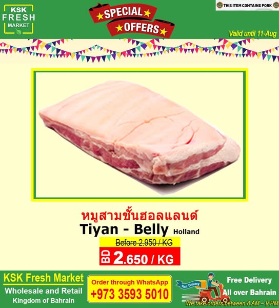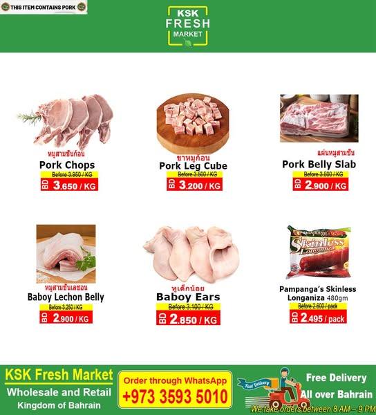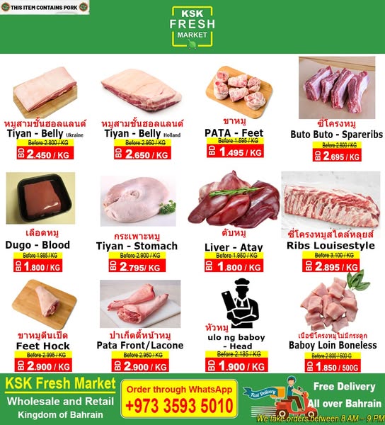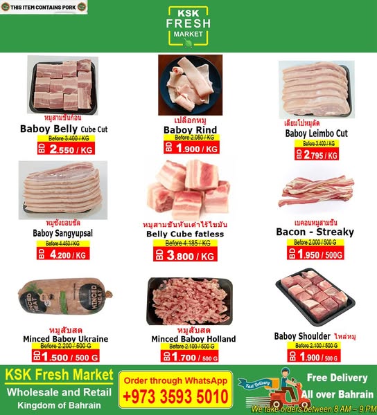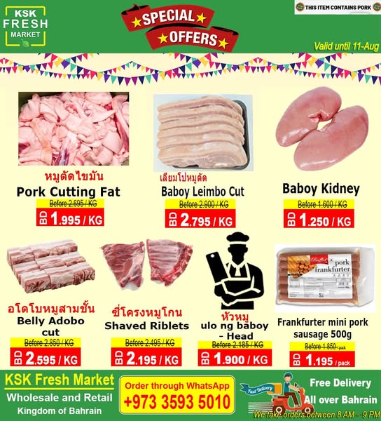 Your culinary adventure awaits! Taste the authentic Philippines and Thailand with our premium, freshly delivered ingredients in Bahrain. Enjoy exclusive deals on our range, including #baboy and farm-fresh items, but only until August 11th. Order now via WhatsApp at +973 3593 5010 (8 AM - 9 PM). #FilipinoFoodBahrain #ThaiFoodBahrain #FreshIngredients #LimitedTimeOffer #kskfresh
