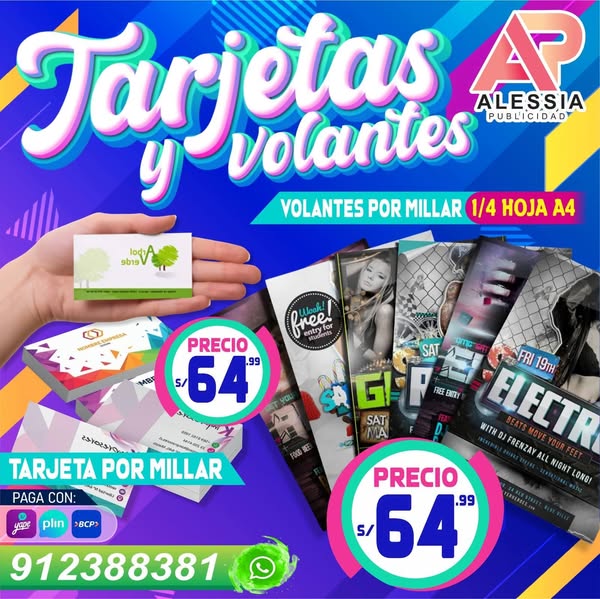 搜索关键词 personalized printing, design services, banners and vinyl, advertising materials, custom stickers, promotional items,lima peru, marketing solutions,printing service, banner printing优势 Wide range of printing and design services,Personalized and thematic designs,High-quality materials and printing (1440 DPI),Delivery throughout Lima and shipping to provinces