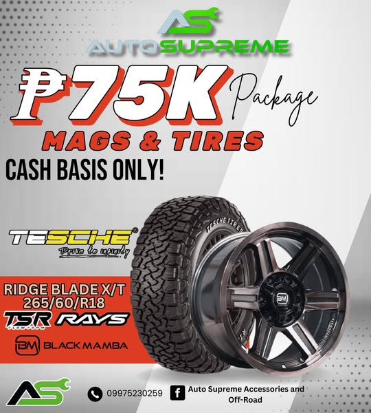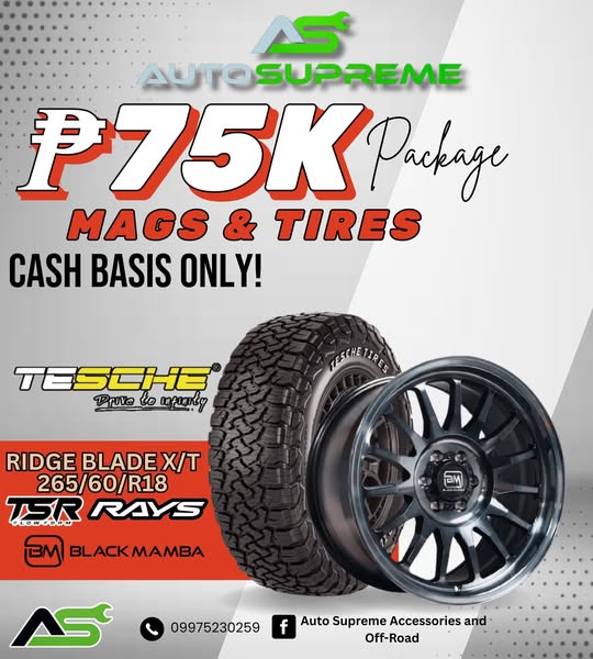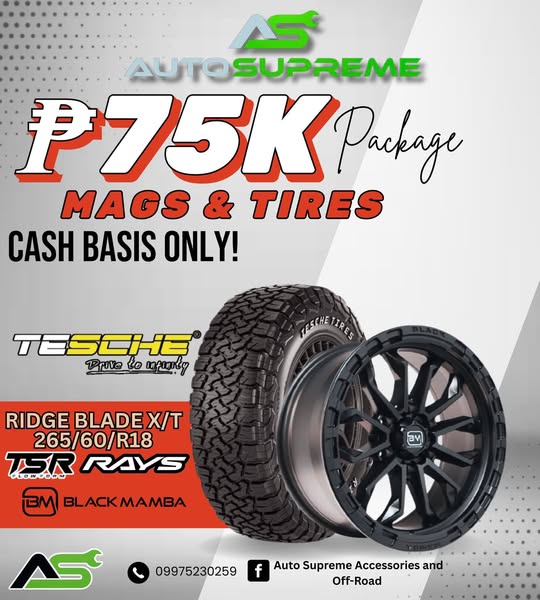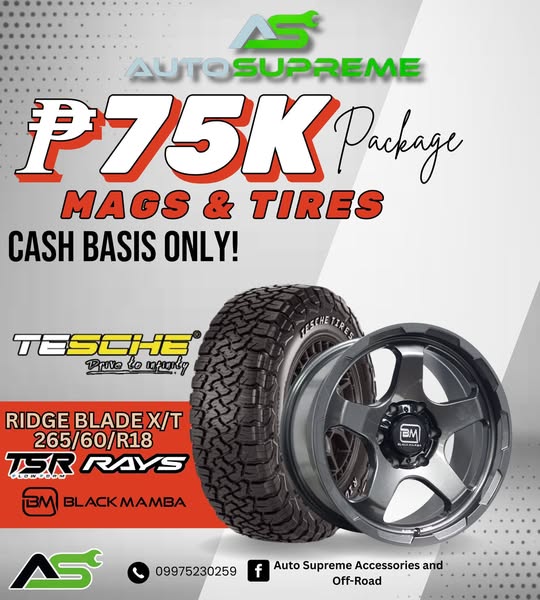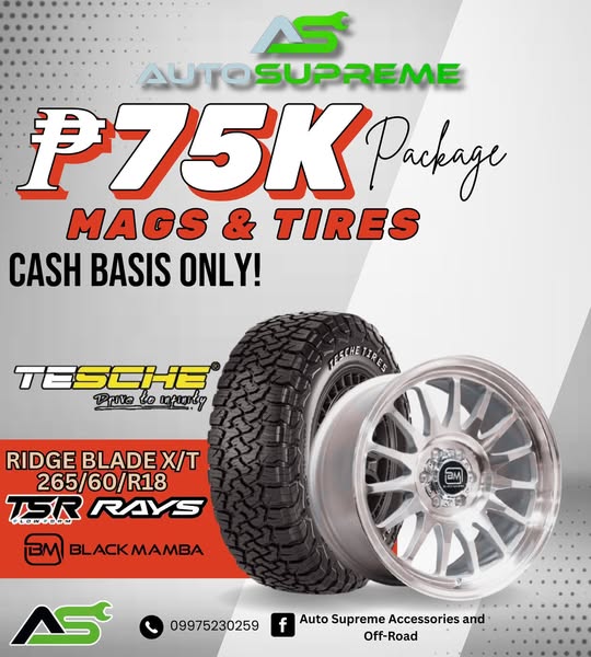 Only ₱75K for Mags & Tires – RIDGE BLADE X/T + RAYS, BLACK MAMBA and TSR!