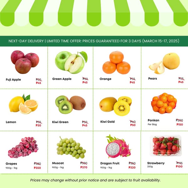 搜索关键词 fresh fruit delivery, affordable fruits, Quezon City fruits, online palengke, fruit lover, fresh produce, next day delivery, convenient fruit shopping, wholesale fruit, retail fruit优势 Fresh and Affordable,Next-day Delivery,Convenient Ordering Process