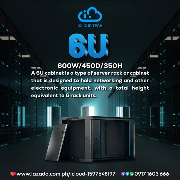 A 6U cabinet is a compact server rack or enclosure designed to hold networking and other electronic equipment, with a total height equivalent to 6 rack units.