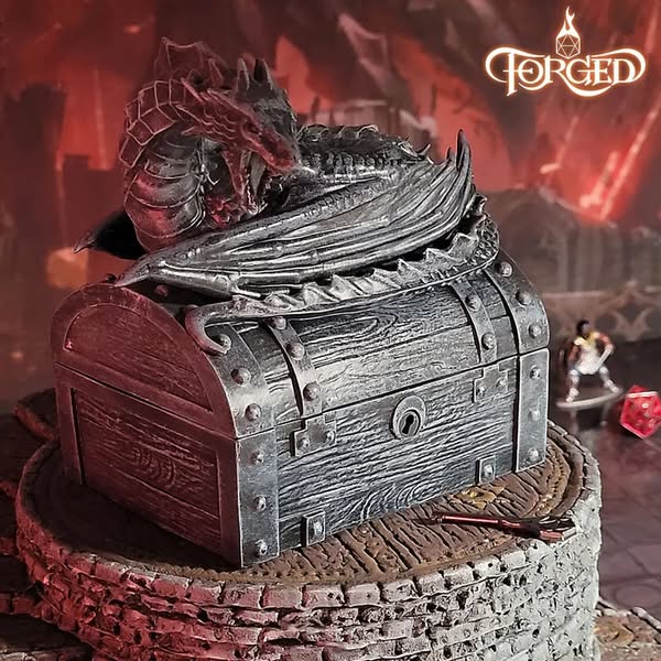 The Wyvern Dice Chest by Forged Gaming offers the perfect combination of fantasy-inspired art and function. Protect your precious RPG dice with this exquisite locking chest featuring an intricately designed wyvern perched on the lid, guarding your treasures with fierce loyalty.