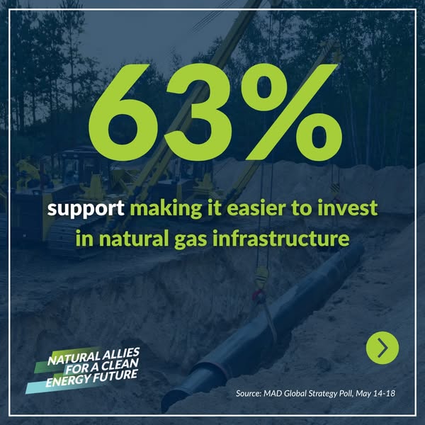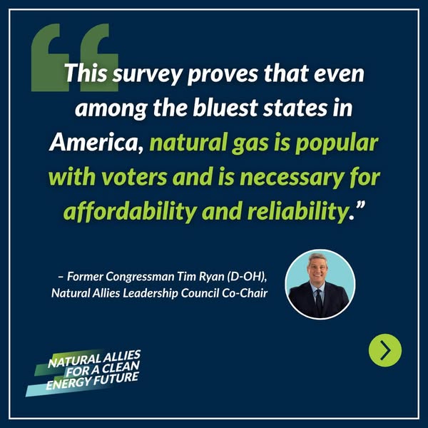 Despite assumptions about deep blue Democratic states aligning with the most progressive energy positions, that's not the reality. Our latest poll in the Bay State finds 68% of voters support a balanced policy of more renewables and more natural gas, with 63% of voters wanting to make it easier to invest in natural gas infrastructure.