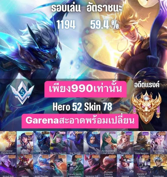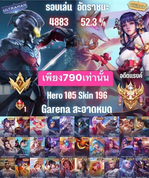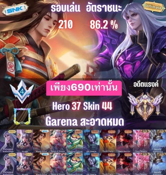 搜索关键词 ROV account, AOV account, Garena ROV, Game account trading, Game rune modify, Buy game account, Sell game account, Installment game account, Thailand ROV, Mobile game account优势 Easy Login,Rune Modifications,Installment Options,Account Trading,Large Following