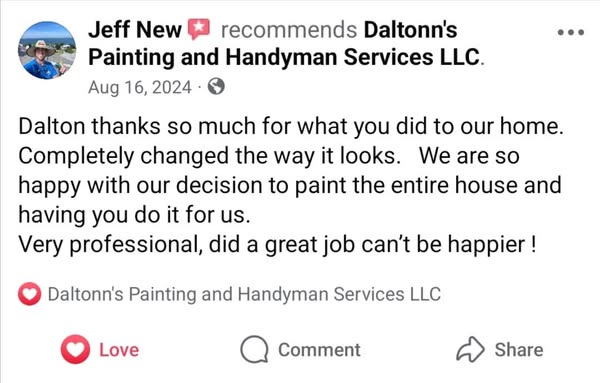 Hey Rockwall, TX🏡 Looking to spruce up your home with a fresh coat of paint? Look no further! Daltonns Painting and Handyman Services is here to help! As a 5-star Google-rated company, we guarantee your satisfaction. 💫