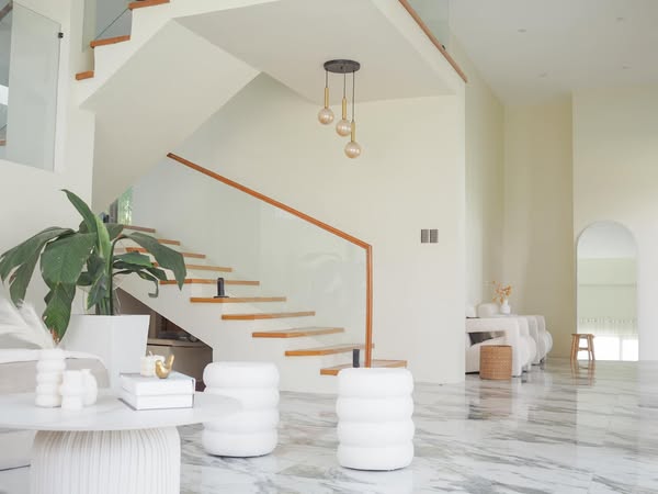 The villa offers four air-conditioned bedrooms and comfortably accommodates up to 21 guests. It includes spacious lounging areas, a large swimming pool, and a roof deck bar. The entertainment options are extensive, featuring a portable karaoke, Gym, PlayStation, Smart tv's, electric air hockey, billiards, ping pong, darts, and various board games. The beautifully landscaped garden complements the fully furnished and thoughtfully designed spaces throughout the villa. 🌊