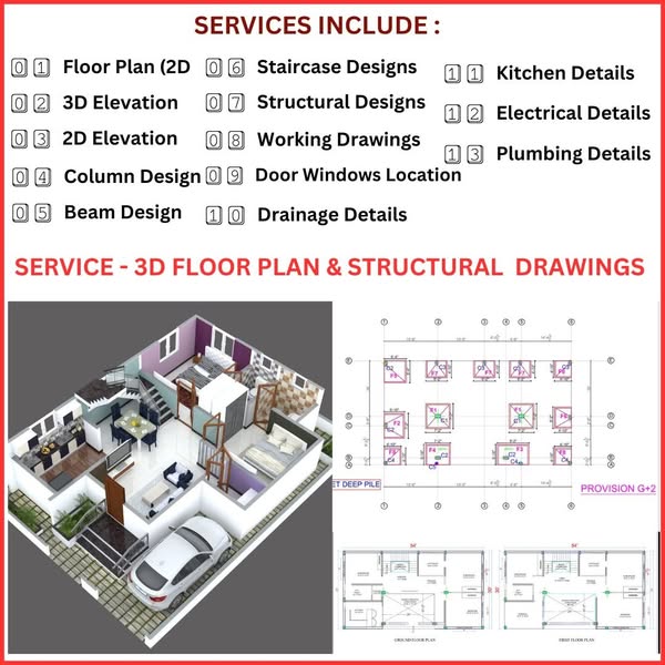 🏗️ Complete Architectural Drawings – Your Dream Home, Perfectly Designed! 🏡📐 ✨ What’s Included in Our Architectural Drawing Package? ✔ Floor Plan (2D) – 100% Vastu-compliant & best space utilization ✔ Furniture Layout – Smart placement for comfort & functionality ✔ 3D Elevation Design – Realistic visualization of your home ✔ 2D Elevation & Section Views – Detailed structural insights ✔ Staircase Design – Safe & stylish step planning ✔ Door & Window Placement – Optimized for ventilation & aesthetics ✔ Electrical Drawings – Safe & efficient wiring layouts ✔ Plumbing & Drainage Layouts – Hassle-free water flow system ✔ Working Drawings – Complete construction-ready blueprints 📌 Why Choose Maruti House Design? ✅ Unlimited Revisions – Until you’re 100% satisfied ✅ Expert Architectural Team – Precision, creativity & quality ✅ Affordable Pricing – Best value for your investment ✅ Timely Delivery – Get your designs on schedule