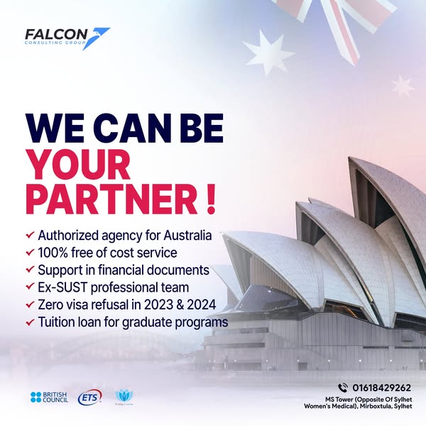 অস্ট্রেলিয়ার ইউনিভার্সিটিগুলোর পার্টনার হিসেবে আমরা কোন চার্জ ছাড়াই অস্ট্রেলিয়ায় আবেদন ও ভিসা প্রসেসিং করছি। একই সাথে থাকছে ফাইনান্সিয়াল ডকুমেন্ট সংক্রান্ত সাপোর্ট, সার্টিফাইড স্টুডেন্ট এডভাইজরস, দ্রুততম সময়ে প্রসেসিং ও সর্বোচ্চ স্কলারশিপের নিশ্চয়তা। আরেকটি চমৎকার ব্যপার হলো, ২০২৪ ও ২০২৫ সালে আমাদের ভিসা রিজেকশন রেট ০%। অর্থ্যাৎ গত দু'বছরে একটি এপ্লিকেশনেও আমাদের ভিসা রিজেকশন হয়নি। 🌟 সো, ২০২৫ কিংবা ২০২৬ সালে আপনি যদি হাইয়ার স্টাডিতে যেতে চান, অস্ট্রেলিয়া হওয়া উচিত আপনার প্রথম পছন্দ। ✈️
